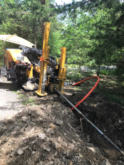 下面的照片显示了一个铺设橙色管道的土沟。一旦管道基础设施被埋入到位,光纤(类似于绳子)将从网络接入点穿过橙色管道。