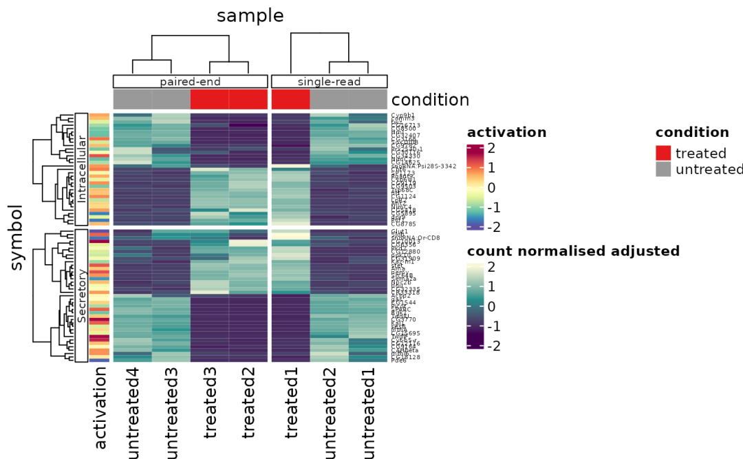 大家查看编写代码,可以看出,「tidyHeatmap」包绘制热力图、甚至复杂的图表类型,都可以快速完成,完全可以一键绘制顶级SCI期刊的热力图要求。