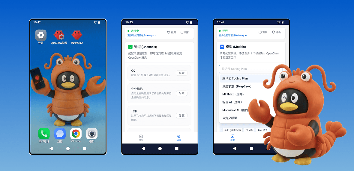 OpenClaw可在云手机一键部署,可视化面板配置,快速接入微信、企业微信、QQ、钉钉、飞书等主流IM!