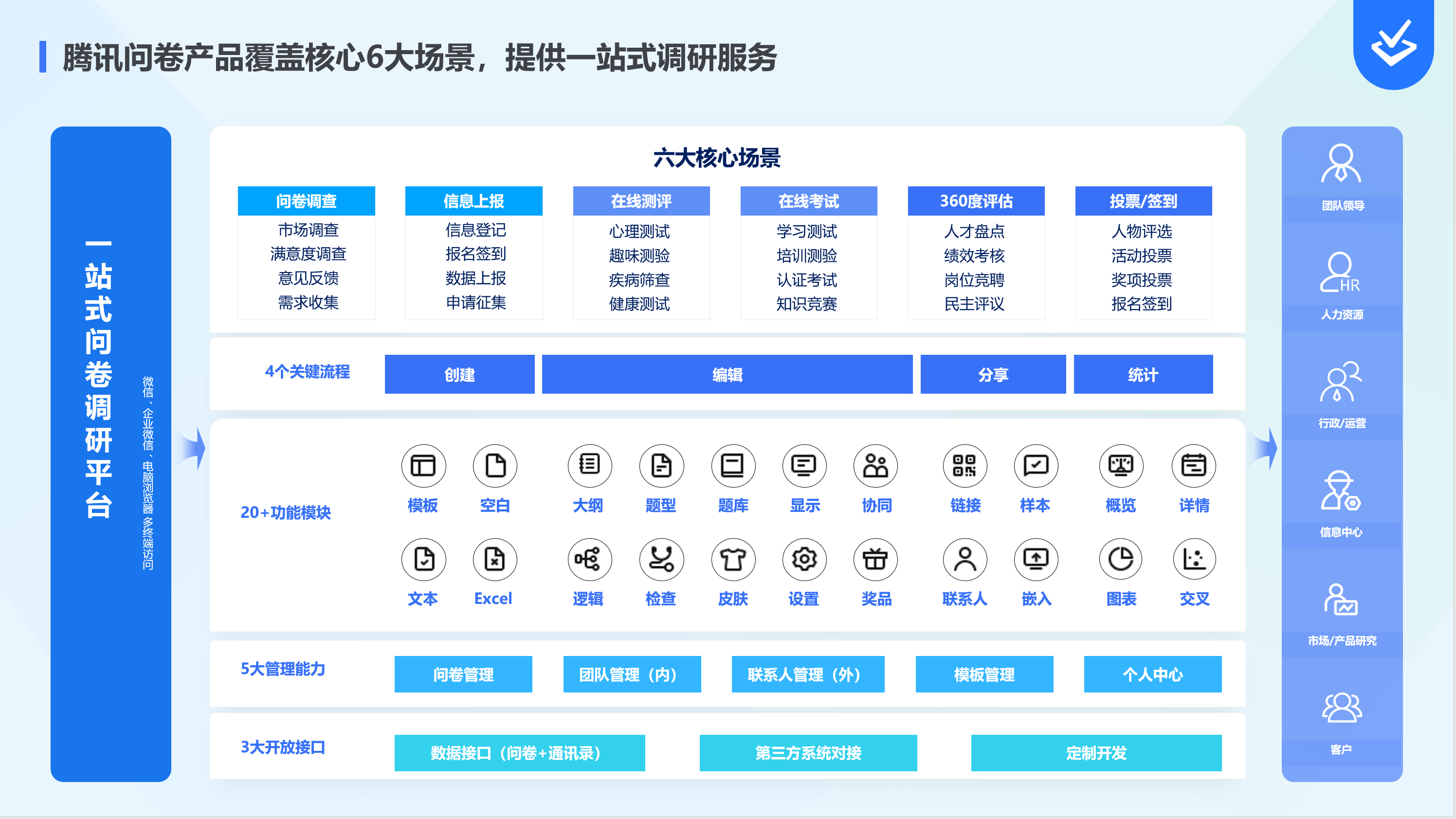 :市场新品研发快,需要进行市场趋势调研、用户画像研究、新品测试等调研场景。