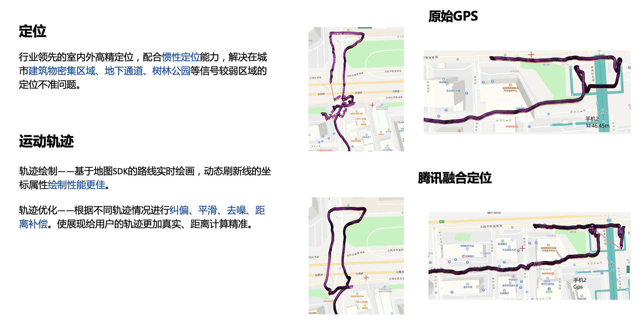 健身训练轨迹记录不准确,缺少自定义能力:需要实时显示或回溯运动轨迹,计算运动速度,查看或分享运动成果