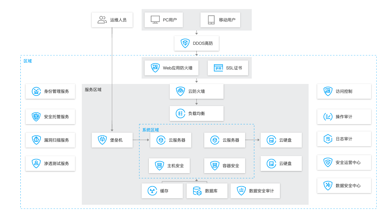 基于网络安全等级保护标准的云上安全合规方案,建设符合等保建设要求的安全技术体系、安全管理体系和安全运营体系,实现业务上线即安全,发布即合规。