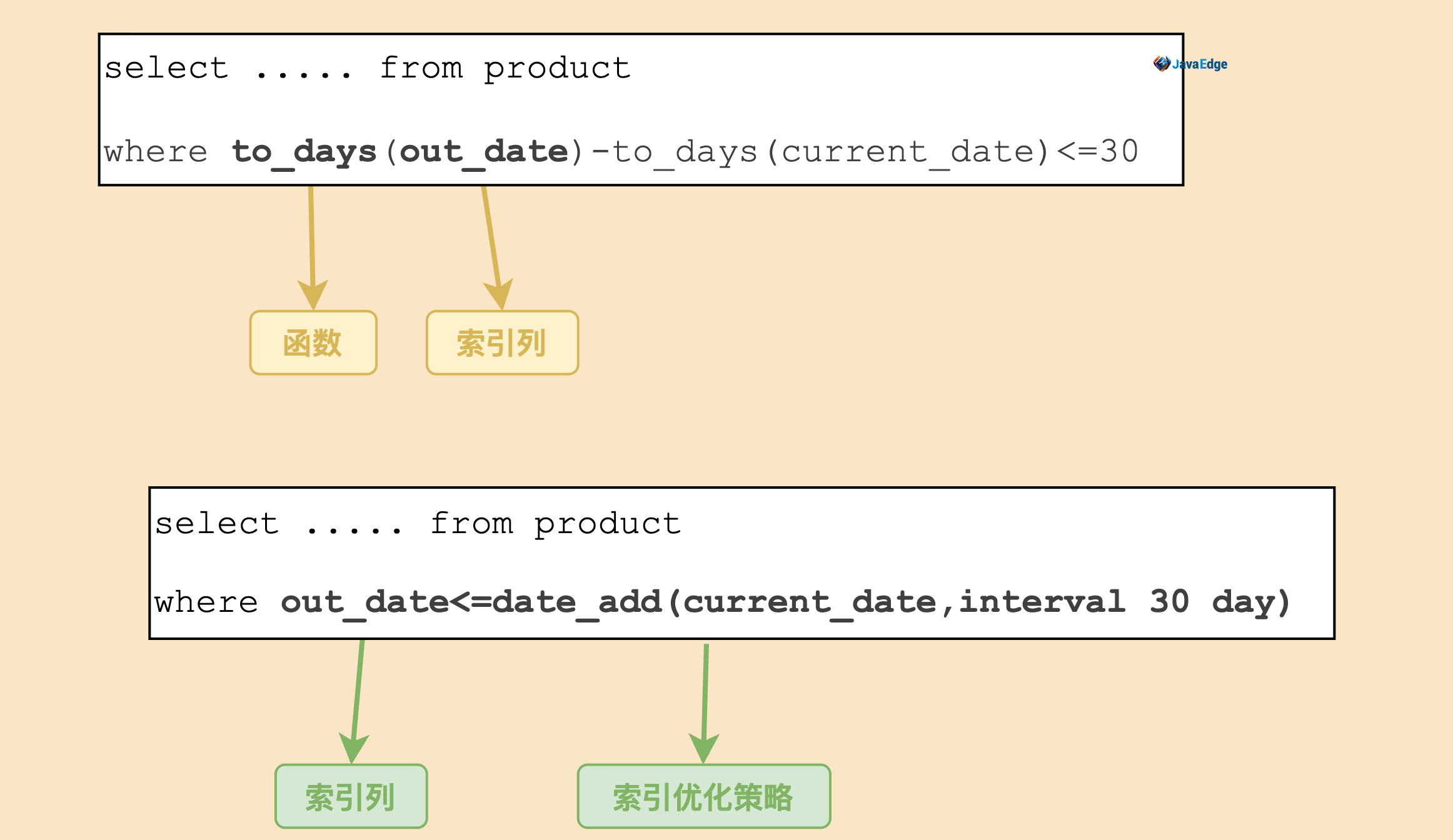 虽然这个查询和情况5中功能相同,但是由于使用了函数left,则无法为title列应用索引,而情况五中用LIKE则可以。再如: