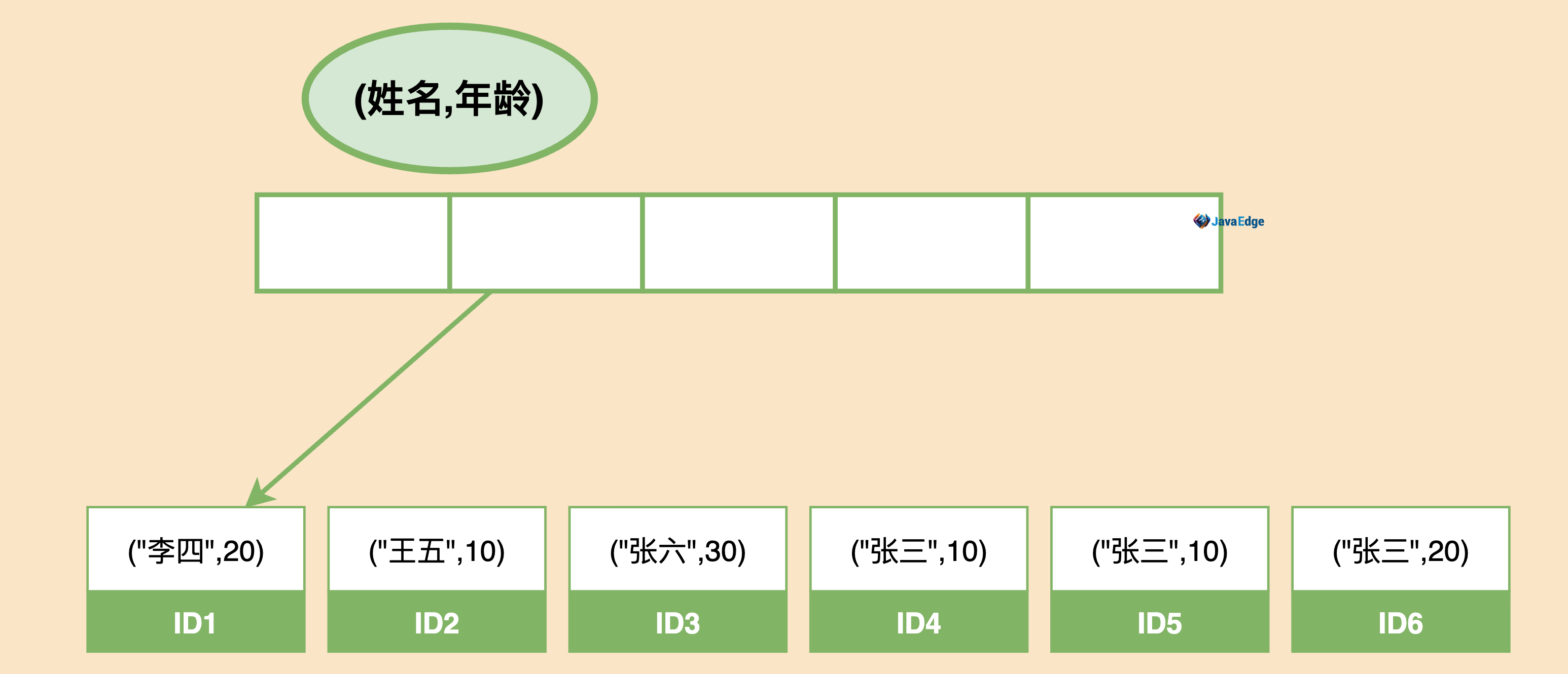 当逻辑需求是查到所有名字“张三”的,可快速定位到ID4,然后向后遍历得到所有结果。