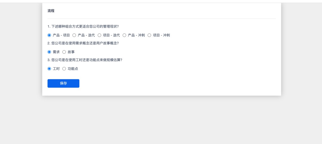 进入应用首页前更具项目组的具体情况选择对应的项目管理模式,如下图所示