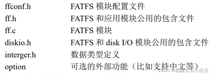 这个就是FATFS文件系统包的结构,diskio 是我们需要与硬件相关的,需要我们来修改。ff 是核心系统代码,不需要修改。然后还有 ffconf 需要我们修改相应的配置。