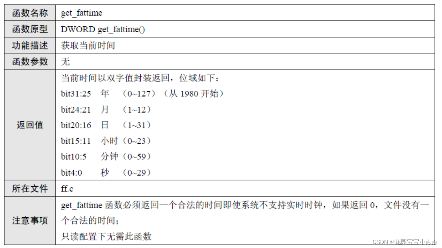 第一步,我们使用的是 MDK5.11a 编译器,器数据类型和 integer.h 里面定义的一致,所以此步,我们不需要做任何改动。 第二步,关于 ffconf.h 里面的相关配置,我们在前面已经有介绍(之前介绍的 10 个配置),我们将对应配置修改为我们介绍时候的值即可,其他的配置用默认配置。 第三步,因为 FATFS 模块完全与磁盘 I/O 层分开,因此需要下面的函数来实现底层物理磁盘的读写与获取当前时间。底层磁盘 I/O 模块并不是 FATFS 的一部分,并且必须由用户提供。这些函数一般有 6 个,在 diskio.c 里面。