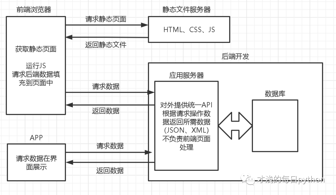 2. 前后端分离[把前端的界面效果(html,css,js分离到另一个服务端,python服务端只需要返回数据即可]。前端形成一个独立的网站,服务端构成一个独立的网站