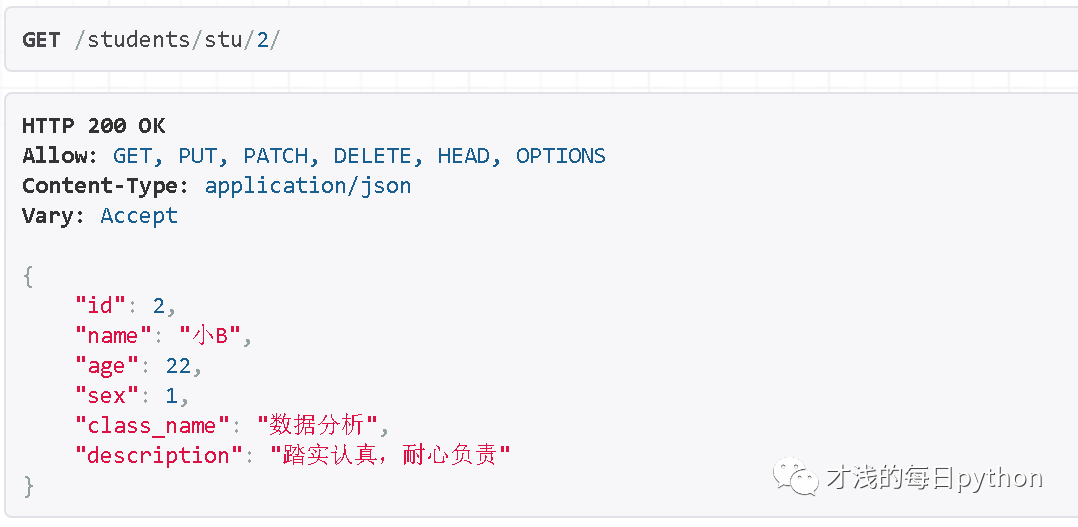 再比如前端js提供过来的json数据,对于python而言就是字符串,我们需要进行反序列化换成模型类对象,这样才能把数据保存到数据库中,这是反序列化。