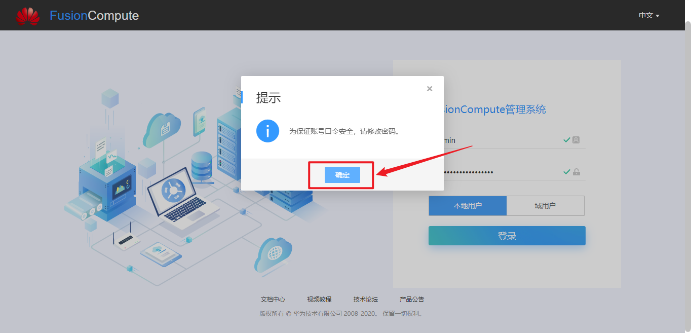 ☎️ 输入初始默认的用户名和密码 用户名:admin 密码:IaaS@PORTAL-CLOUD8!