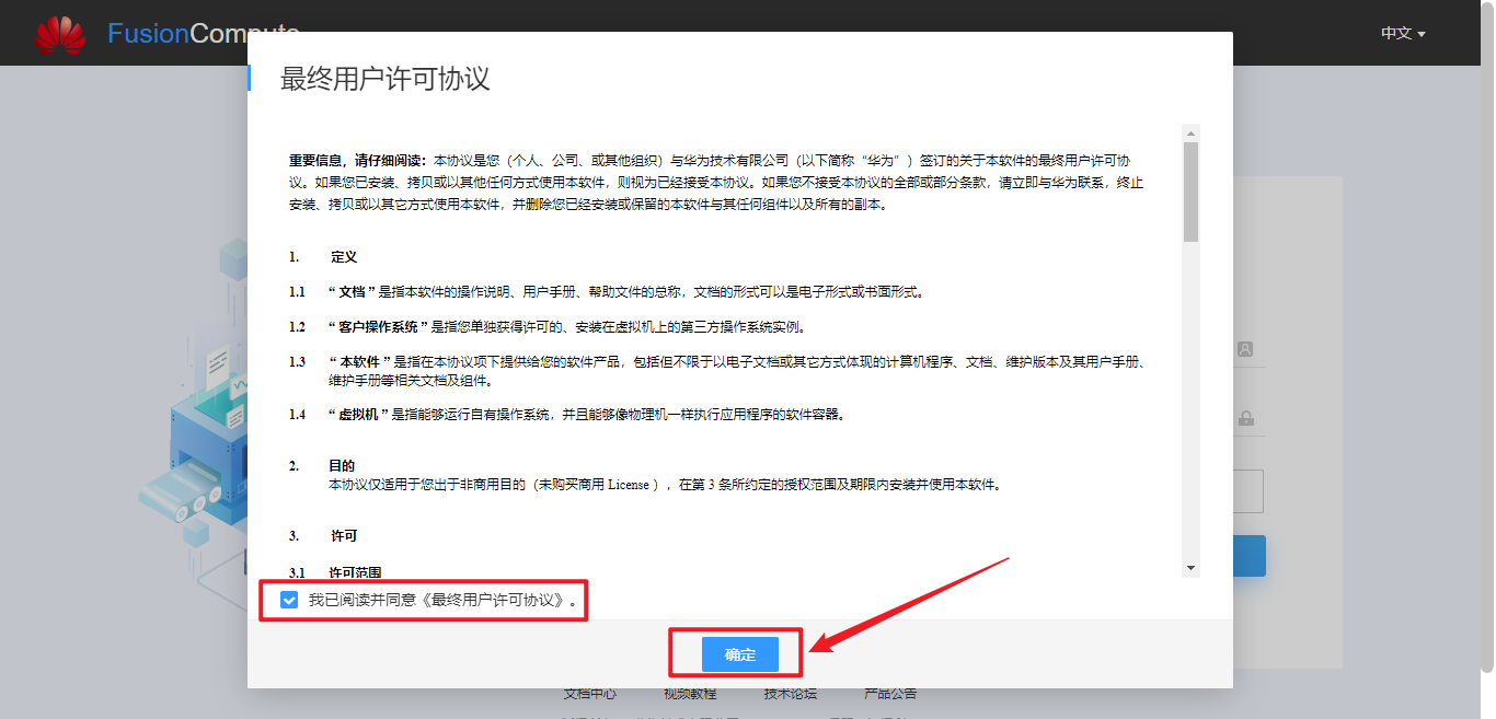 勾选同意协议,单击“确定”。