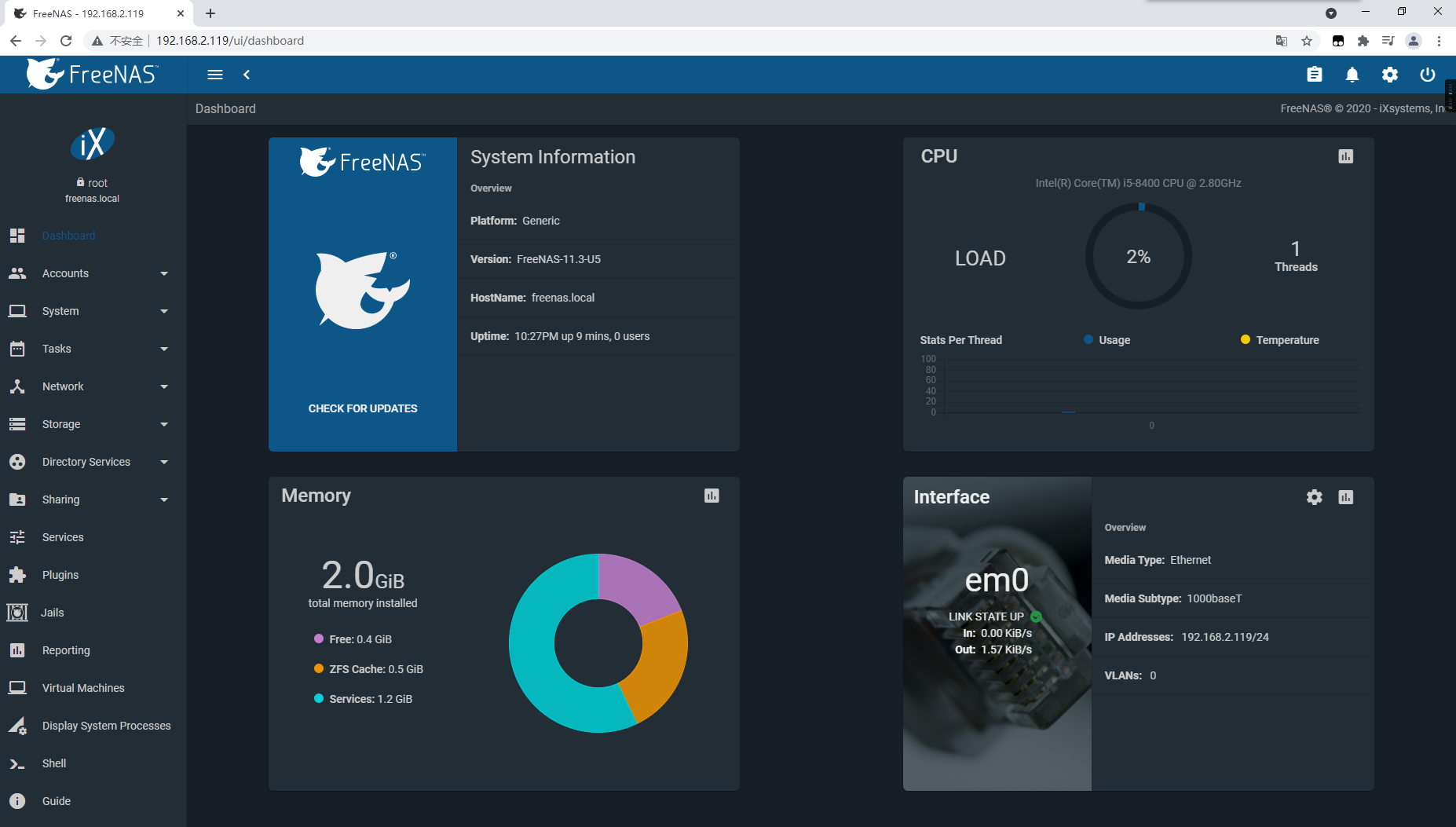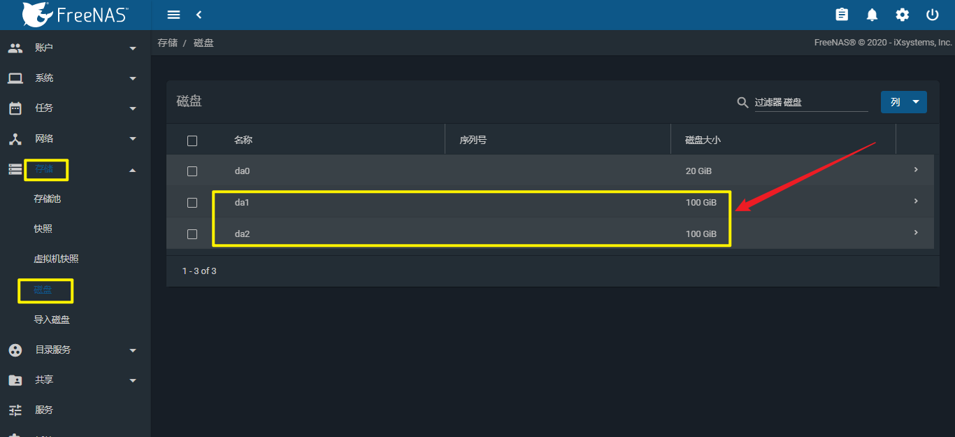 3、FreeNAS设备配置信息如下图所示。