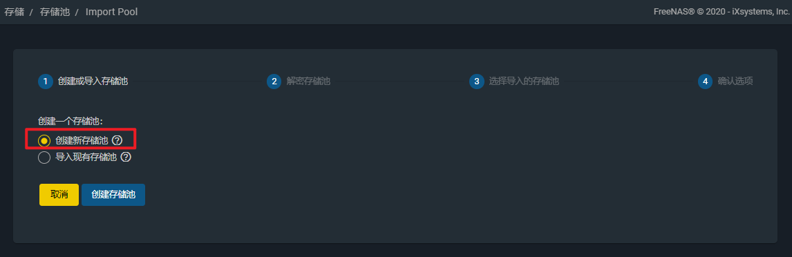 选择"创建新存储池",单击"创建存储池"。