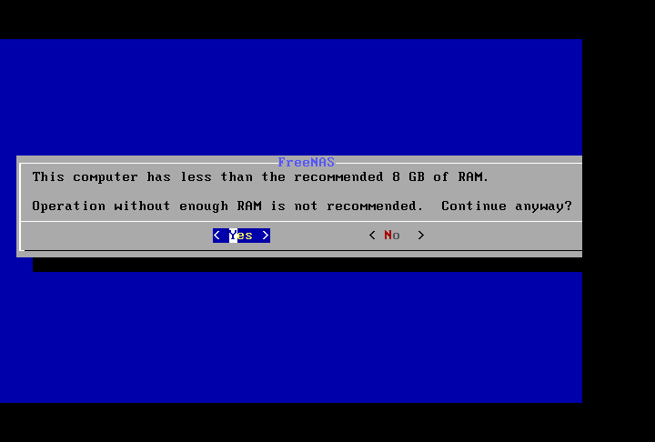 6、提示内存小于8GB,不推荐。点击“Yes”,忽略。