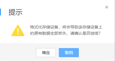 提示将格式化存储设备,点击"确定"。
