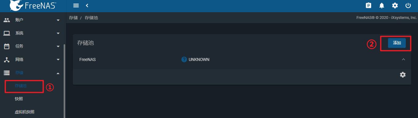 点击"存储池",单击"添加"。