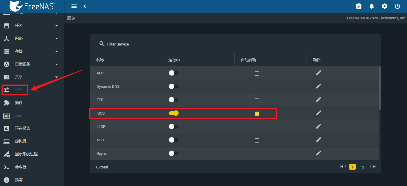 点击"服务",启动"iSCSI服务"。