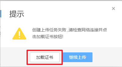 点击"开始上传",弹出提示,选择"加载证书"。