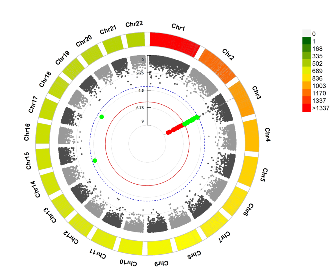 CMplot(dat,plot.type="c",r=0.4,col=c("grey30","grey60"),chr.labels=paste("Chr",c(1:22),sep=""),