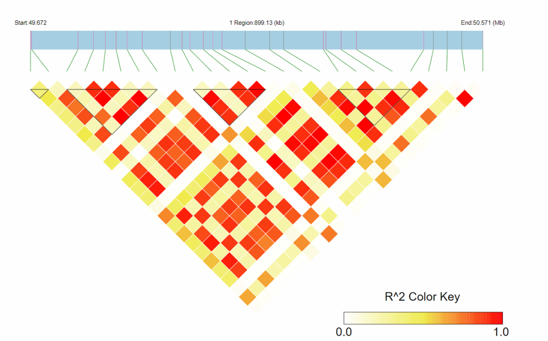 在GWAS分析中,我们挖掘到了一些显著性的位点,如何确定这些位点是不是假阳性呢?我们可以通过LDblock分析并进行可视化进行判断。