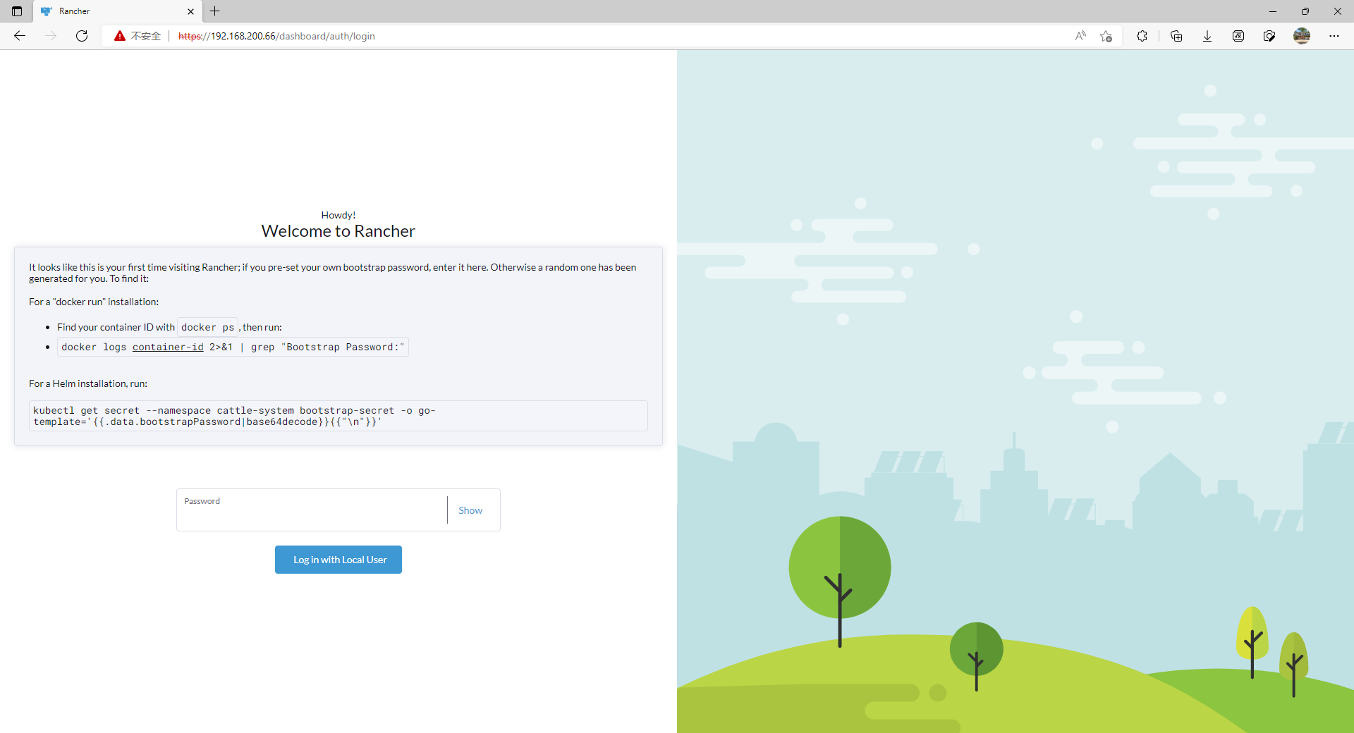 rancher login http://172.17.0.2/v3 --token token-6zrpd:zxdcx4hmds5z5s7cxm9sqmwlkgjjzrkfqjlgzf6vv7l255wzw7tlgk[root@docker ~]# rancher login https://192.168.200.66/v3 --token token-6zrpd:zxdcx4hmds5z5s7cxm9sqmwlkgjjzrkfqjlgzf6vv7l255wzw7tlgk