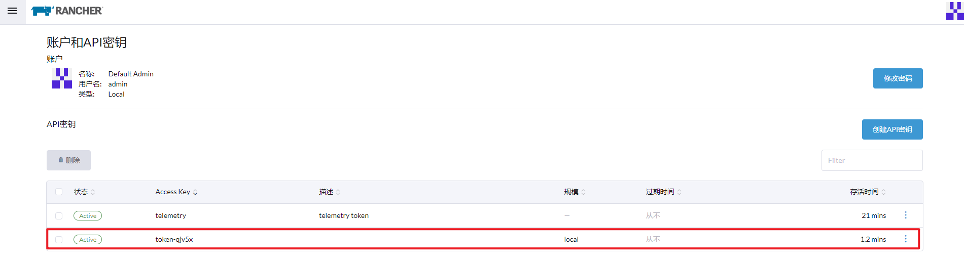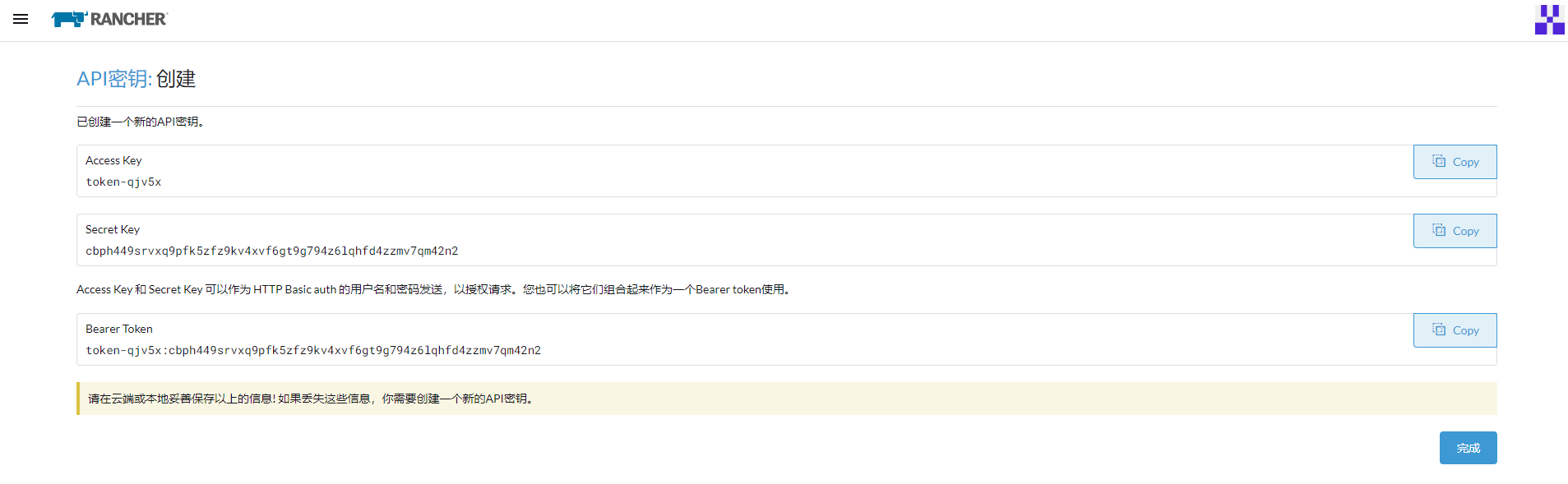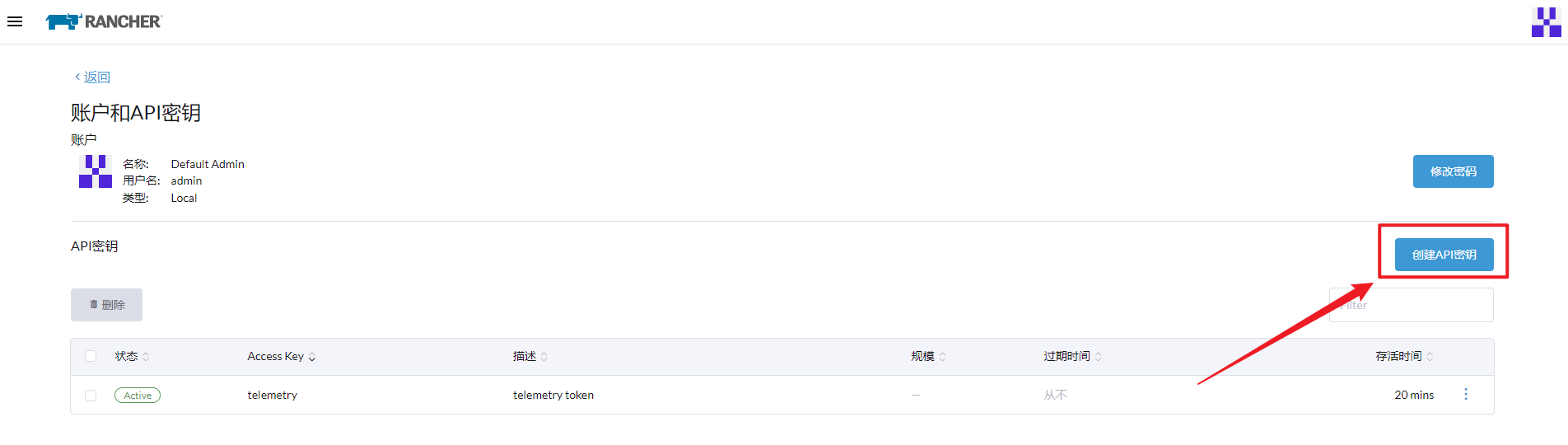 [root@docker ~]# mv rancher-v2.6.5/rancher /usr/bin/rancher创建API密钥