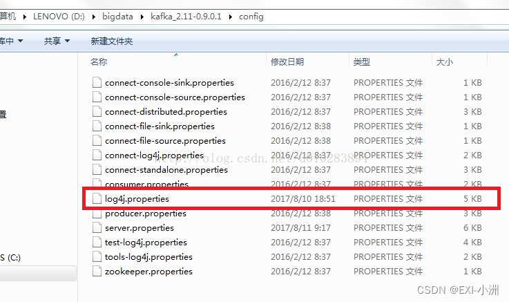 ①进入kafka配置文件所在目录,D:\bigdata\kafka_2.11-0.9.0.1\config