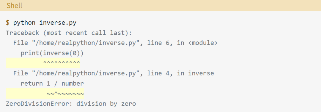 Python 3.11 将 Decorative annotation 添加到 tracebacks 中,以帮助用户更快地解释错误消息。想要获得这种功能,可以将以下代码添加到 inverse.py 文件中。