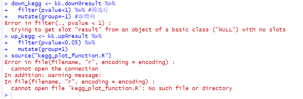 那是两个报错,两个原因。第一个报错因为确实没富集到,source 是第二个报错,找不到对象/文件,你应该把对应的文件放到你的工作目录下,用 Rproj 管理工作目录。