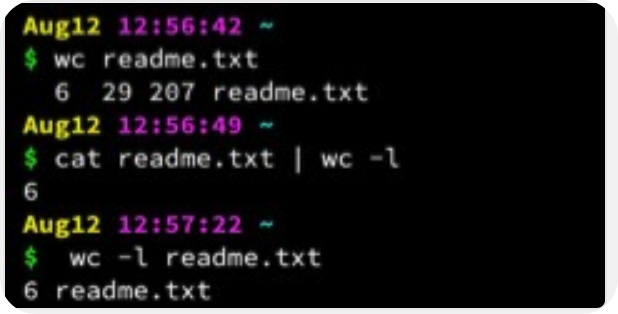 基本一致 除了直接wc会带上文件名,用cat和管道符不带文件名之外