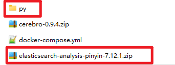 2:将elasticsearch-analysis-pinyin-7.12.1.zip 本地解压后,修改修改名字为py