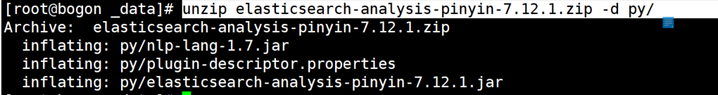 unzip elasticsearch-analysis-pinyin-7.12.1.zip -d py/