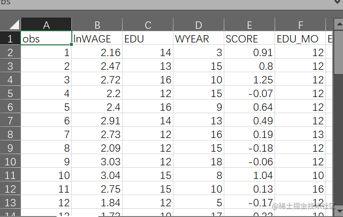 读取工资数据 在excel中选取数据,复制。在R中读取数据
