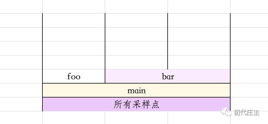 如果我们在程序运行的过程中,去抽样&统计函数调用栈各个情况和它的占比,只要样本数据够多,执行 foo 的情况差不多会占 33.3%,执行 bar 的情况差不多会占 66.6%.