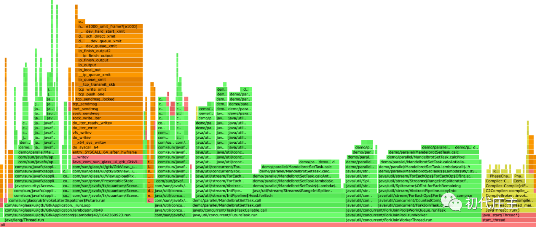 上面是一个通过 async-profiler 打出的火焰图,通过这个开发者可以清楚的看到哪个函数占用的时间多,进而有针对性地优化。