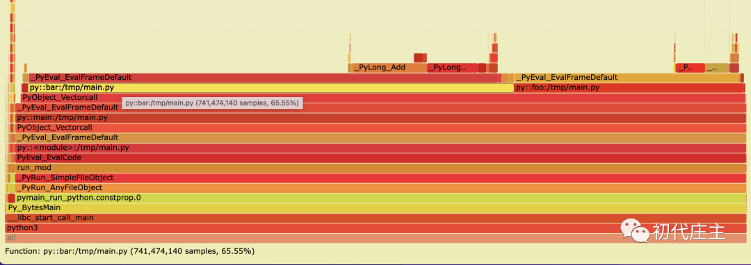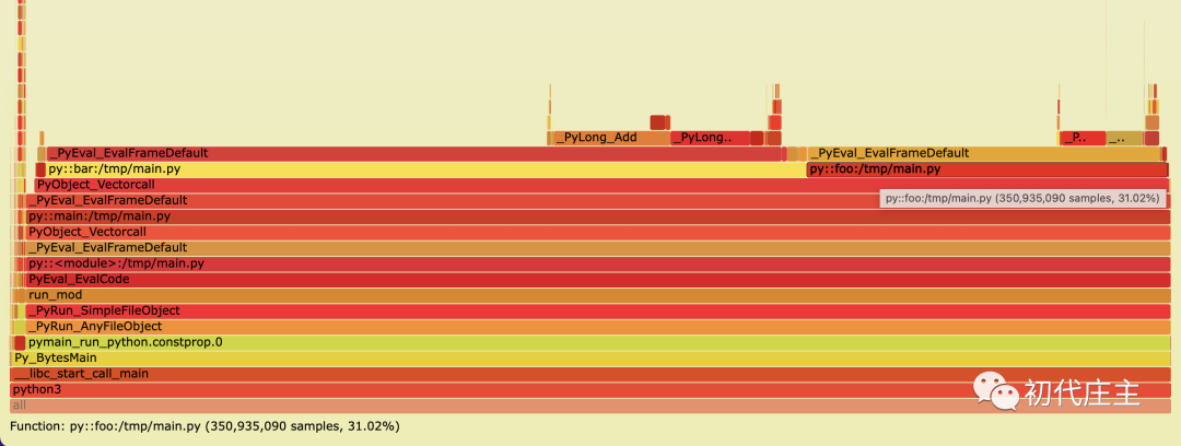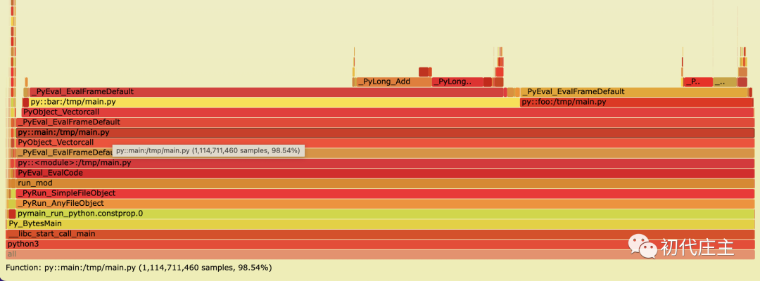 以 Java 做参考,确实能发现 Python 的不足。 记得有一天在公司食堂吃饭,排队时我突然就悟了;之前做 MySQL DBA 的经历告诉我,虽然我打 MySQL 的火焰图也看不到 MySQL 执行的 SQL 语句;也是只能看到 C/C++ 的函数堆栈,但这并不影响我解决问题。