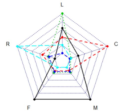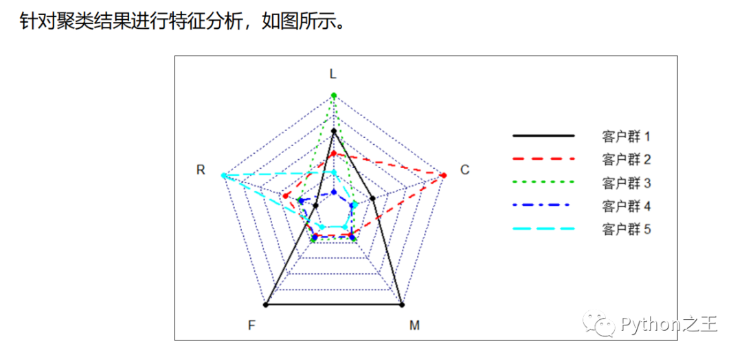 7)利用matplotlib绘制雷达图,进行客户群体分析。
