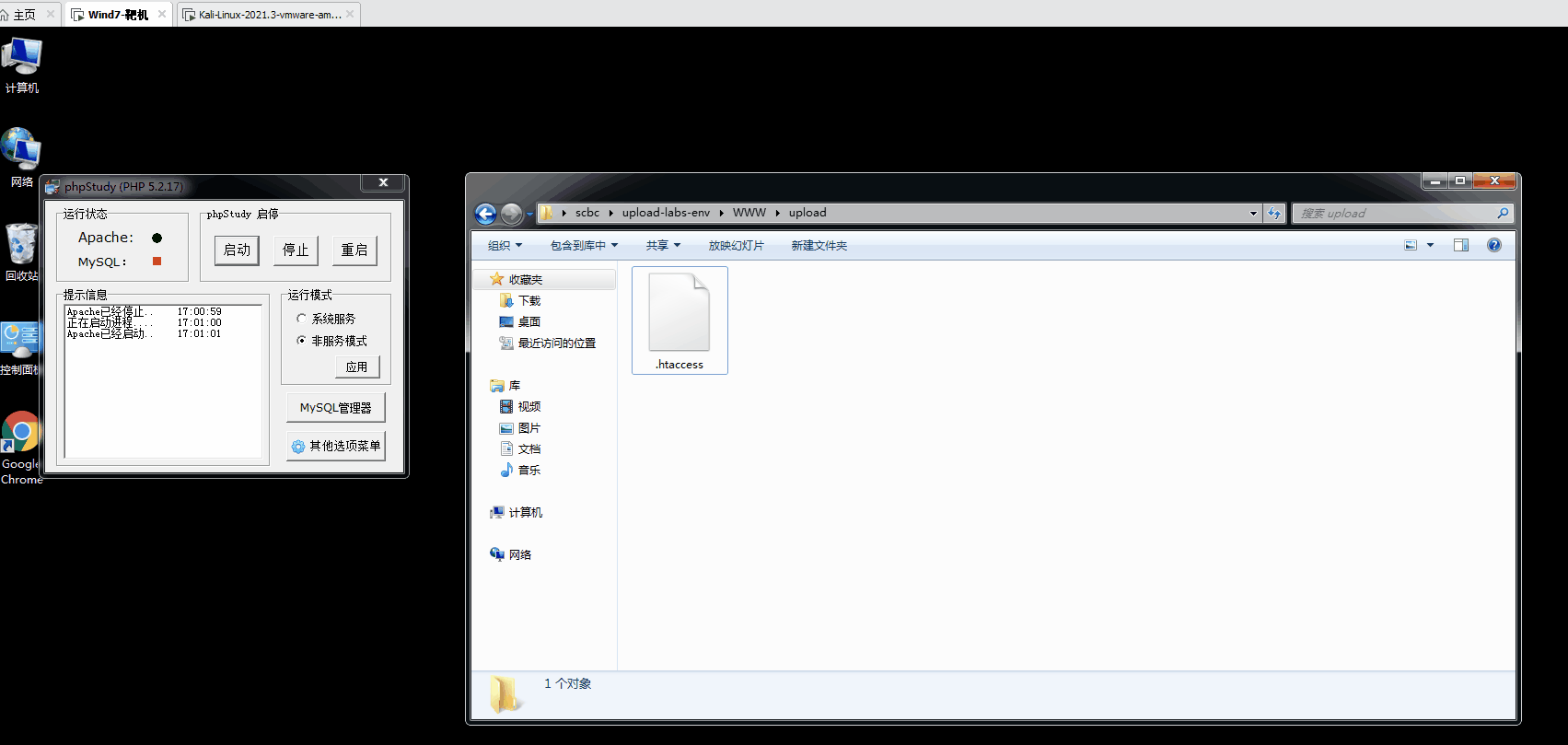 看上面的代码可以看出,.htaccess文件是没有被禁止上传的,可以先把这个文件上传到服务器上