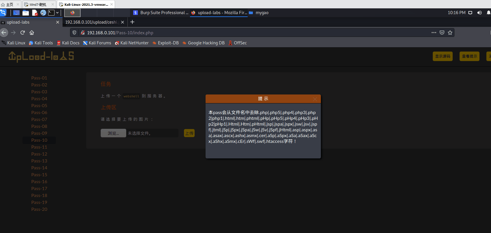 这关看代码它还是代码问题,它使用了str_ireplace()函数,这个函数它是不区分大小写的替换函数,举例:测试.phtmhp或测试.pphphp执行函数后是 测试.php因为里面有htm和php有就替换为空,这是在$deny_ext变量中定义好的