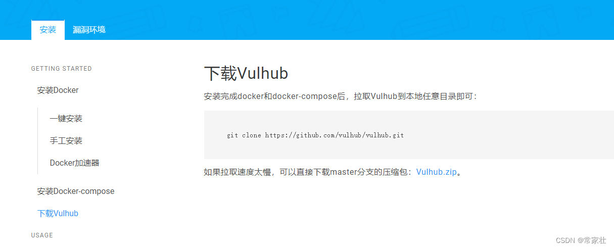 下载 Vulhubhttps://vulhub.org/#/docs/download-vulhub/ 或者下载我演示的压缩包