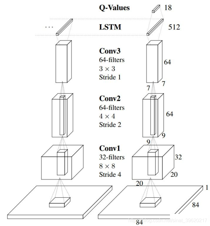 DRQN是一个用来处理POMDP(部分可观马尔可夫决策过程)的一个算法,其采用LSTM替换DQN卷基层后的一个全连接层,来达到能够记忆历史状态的作用,因此可以在部分可观的情况下提高算法性能。具体讲解可以看强化学习——DRQN分析详解。由于QMIX解决的是多智能体的POMDP问题,因此每个智能体采用的是DRQN算法。