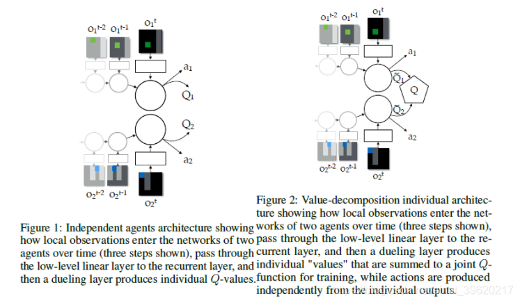 图(c)表示每个智能体采用一个DRQN来拟合自身的Q值函数的到