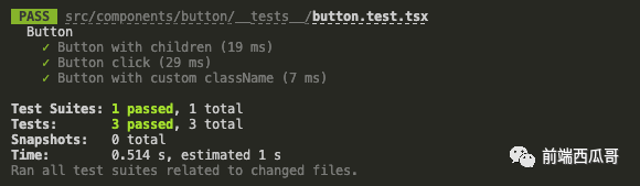 然后执行 jest 命令,得到测试结果。