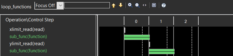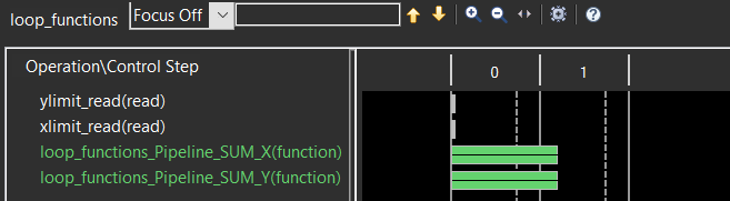由于该模块只被实例化一份,那么两次累加操作就需要分时复用这个累加器,从而实现了资源共享,但也降低了性能,这可从Schedule Viewer视图中验证。