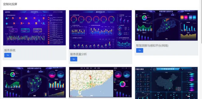 平台内置至少14种Dashboard定制布局,用户可以选择某一种框架、多页面、定制背景。