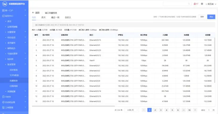 2、支持统计端口带宽、入流量、出流量、总流量、端口输入速率、端口输出速率、峰值端口输入速率、峰值端口输出速率、平均端口速率、入带宽利用率、出带宽利用率、峰值入带宽利用率、峰值带宽出利用率、平均带宽利用率;