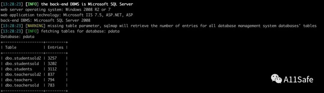 使用--tables可获取数据库中的表名,同理使用--columns可获取表中的列名