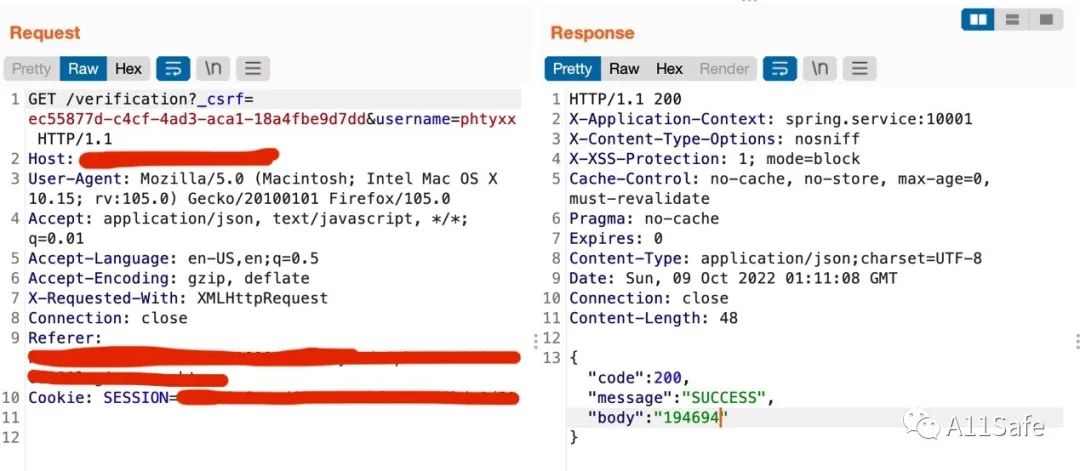 在 BurpSuite 的历史记录下发现响应包中存在验证码